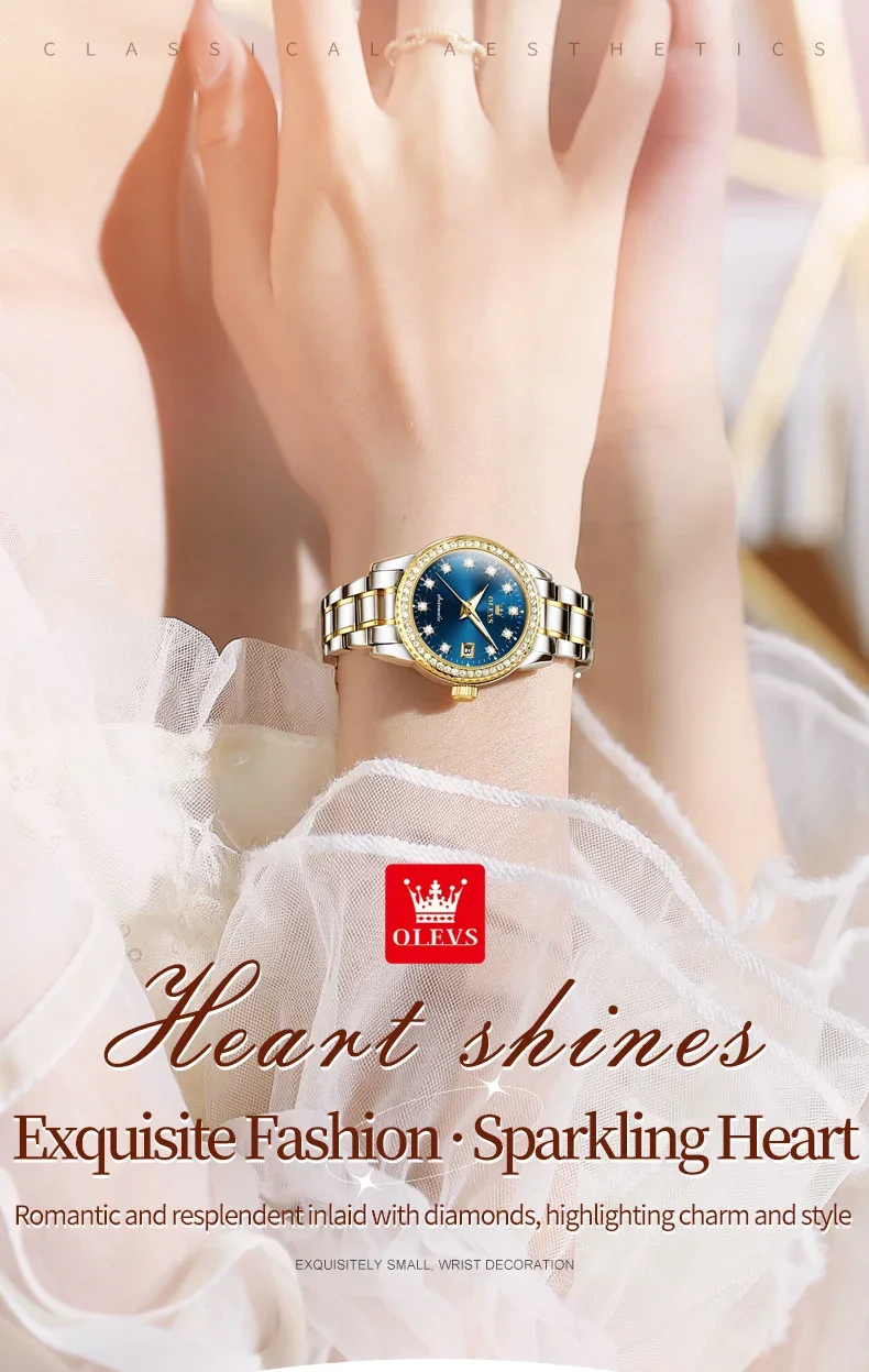 Entre o aço inoxidável polido e o mostrador luminoso, cada detalhe é uma celebração da feminilidade moderna: precisa, determinada e eternamente graciosa. Este não é apenas um relógio — é o emblema de uma mulher que transforma o cotidiano em arte e o tempo em poder.